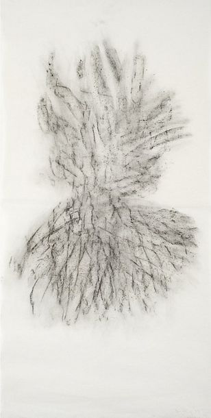 Sprache spielt eine wichtige Rolle in Liane Birnbergs Werk. Sie befreit die Schrift jedoch von ihrer Semantik und reduziert sie auf ihre grafische Präsenz, reibt Textpassagen aus Zeitungen und Büchern auf hauchdünnes Papier, bis die Buchstaben kaum noch zu erkennen sind. Birnberg bezeichnet sich als Alchemistin, mit Tee, Kohle, Tusche, Farbstiften und Schellack schafft sie filigrane Werke auf Papier, das sie mit Feuer versengt, zerknittert und wieder glättet. Die fertigen Arbeiten lassen das Ausgangsmaterial oft nur noch erahnen. Ähnlich, wie die Alchemisten mehr zufällig das europäische Porzellan erfanden, sind auch Birnbergs Arbeiten nicht vorhersehbar. Sie kratzt, wischt, löscht und reduziert die Formen bis zu ihrer Auflösung. Vereinzelt schraffiert sie und legt fragile Strukturen an. Mit Farbe geht sie sehr sparsam um, reibt sie ab oder gewinnt sie aus anderen Farbdrucken. Viele Arbeiten wirken durchsichtig bis auf den Grund. Carmen Gräf, Tagespiegel 2018