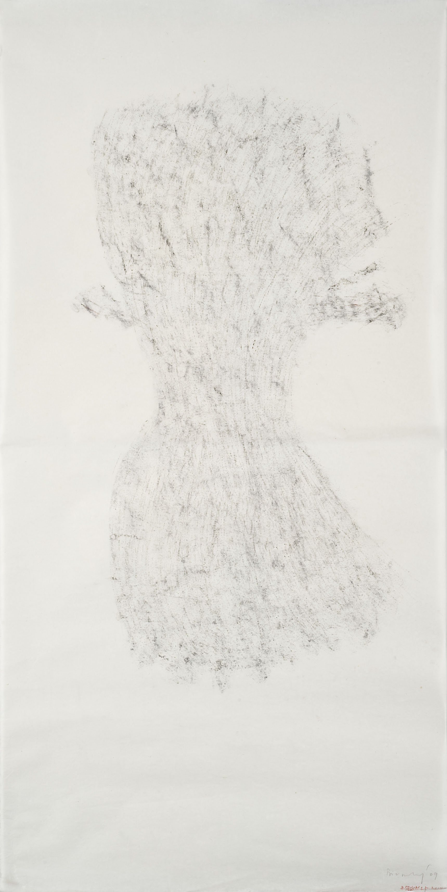 Manchmal sind deine Zeichnungen auch wie die Geschichten, die Kleider erzählen von den Körpern aus der Zeit der alten Ägypter, der Pharaonen, die sie getragen haben. Mir scheint, du beginnst immer da, wo die beiden Zeitebenen einander berühren, die Haut der Gegenwart und das Kleid der Vergangenheit. Text von John Berger - Übersetzung: Michael Roeder